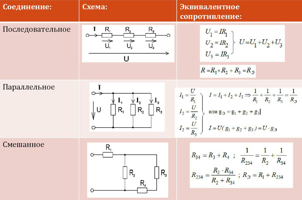 Параллельное. Начальные выводы всех сопротивлений соединяются в одной точке, конечные – в другой. Ток проходит по каждому резистору. Общее сопротивление в такой цепи всегда меньше, чем сопротивление отдельного резистора.