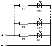 - большое количество элементов цепи из-за необходимости использования индивидуальных резисторов для каждого диода;