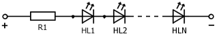 При подключении нескольких светоизлучающих приборов к источнику питания может использоваться два варианта соединения – последовательное и параллельное.