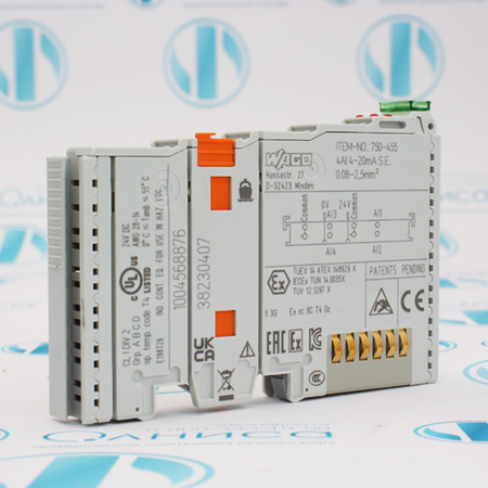 750-455 Модуль аналогового ввода Wago, DIN, IP20, IN: 4, размеры 12x100x69мм, толщина 8мм, 750/753, 0-55°C.