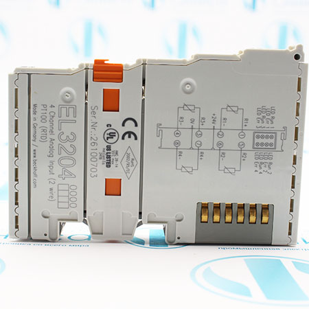 EL3204 Модуль ввода Beckhoff, облегчает прямое подключение четырех датчиков сопротивления. Измеренное значение сопротивления может быть либо выведено непосредственно в омах, либо преобразовано в температуру. Если интересует температура в точке измерения, преобразование сопротивления в температуру может быть выполнено на терминале в соответствии с различными характеристиками датчика (типы Pt100, Pt1000, NI120, NI1000, KTY и т. д.). EL3204 может управлять датчиками по 2-проводной технологии. Терминалы EtherCAT указывают свои измерительные возможности с помощью светодиодов и битов состояния в образе процесса EtherCAT .