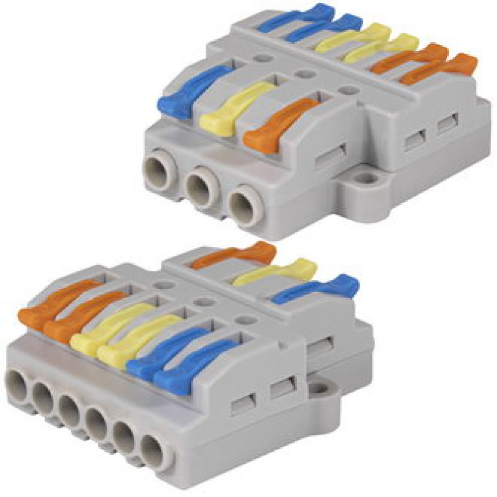 Заказать Зажим-клемма 3х2 проходная разветвительная на 3 полюса RUICHI PC 10, маркировки: красный/синий/желтый, корпус PA66 Ваше имя: Телефон:* E-mail: