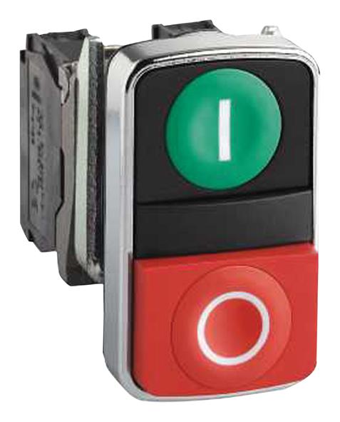 Двойная кнопка, пластик, Ø22, зеленый с маркировкой I + красный с маркировкой O, 1 НО + 1 НЗ;  Schneider Electric XB5AL73415