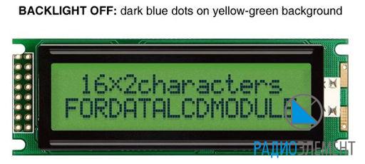 ЖКИ 16х2 Символьный, габариты: 85.00х36.00мм, активная область: 55.65х10.98мм, Positive Transflective, FSTN, подсветка: по кромке,  белая,24/7;  Ulcd=3.0V, угол обз. 6:00,-20…+70°C, рус/eng.