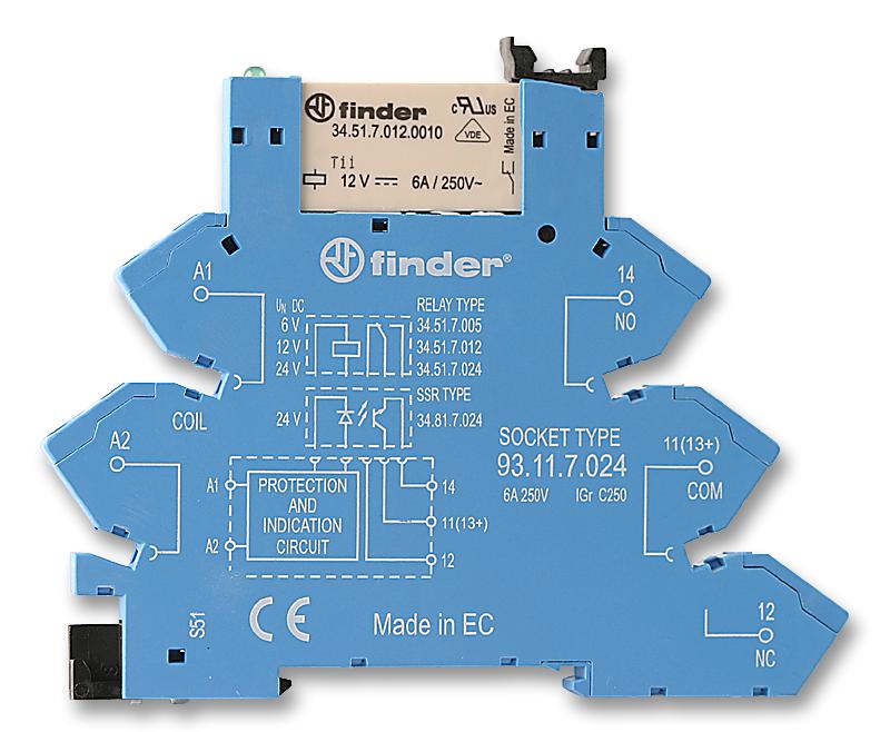 38.61.7.024.0050 Интерфейсный модуль (сборка 34.51.7.024.0010 + 93.51.7.024), электромеханическое реле; 1CO 6A; конта FINDER
