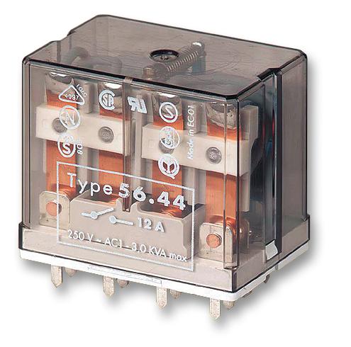 56.44.9.012.0000 Миниатюрное силовое электромеханическое реле; монтаж на печатную плату; 4CO 12A; контакты AgNi; кату FINDER