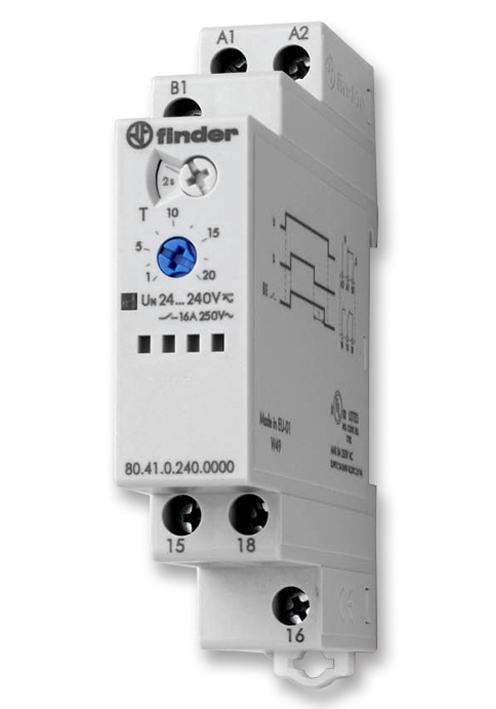 80.41.0.240.0000 Модульный таймер 1-функциональный (ВЕ); питание 24…240В АС/DC; 1CO 16A; ширина 17.5мм; регулировка в FINDER