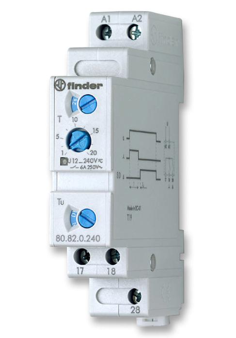 80.82.0.240.0000 Модульный таймер 1-функциональный (SD); питание 24…240В АС/DC; 2NO 6A; ширина 17.5мм; регулировка вр FINDER