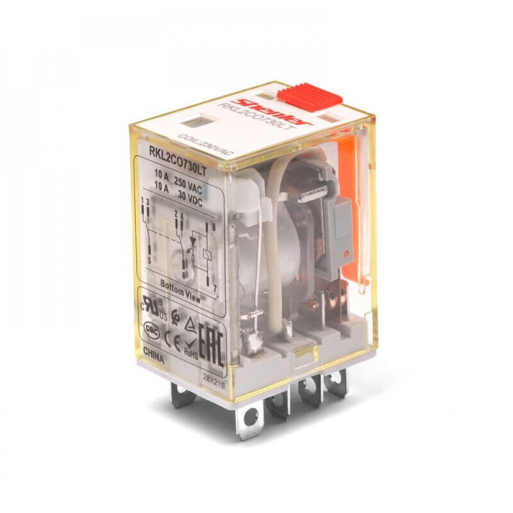 RKL2CO012LT; Реле RKL, 2CO, 12VDC, с LED, тест. кноп.