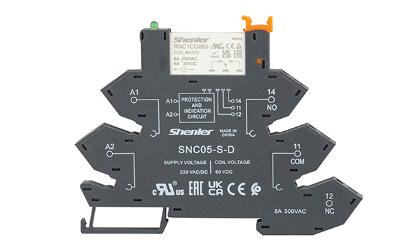 Реле интерфейсное RNC1CO060 с колодкой SNC05-S-D, пружинный зажим, 1CO, 6A(250VAC), 230VAC/DC, LED, W=6.2mm