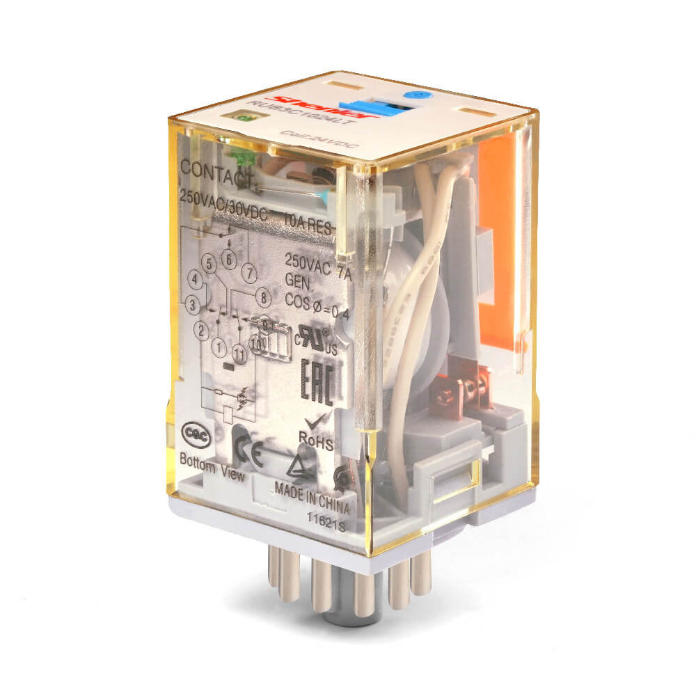 Реле общего назначения, 2 группы переключающих контактов, 12VAC, 10A, светодиодная индикация, тестовая кнопка, для колодок серий: SUB08-E, SUB08-A
