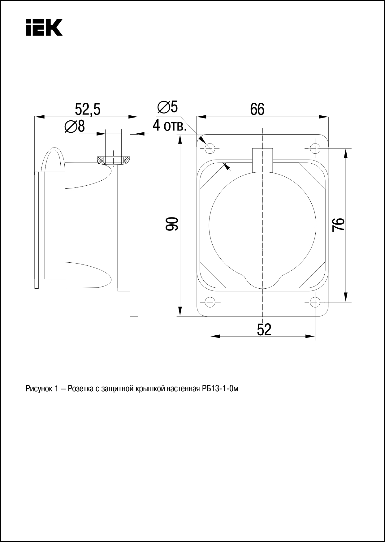 Розетка 1-м Омега РБ13-1-0м IP44 настен. с заземл. с защ. крышкой каучук черн. PKR11-016-2-K02 IEK