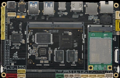 Отладочный комплект на процессоре Rockchip PX30 4-ядерный Cortex A35 , 1Гб оперативной памяти и 8Гб постоянной. Ethernet, LVDS/MIPI, Audio порты, 7 USB(1 OTG), SPI, I2C, UART . Работает с Android  и Linux