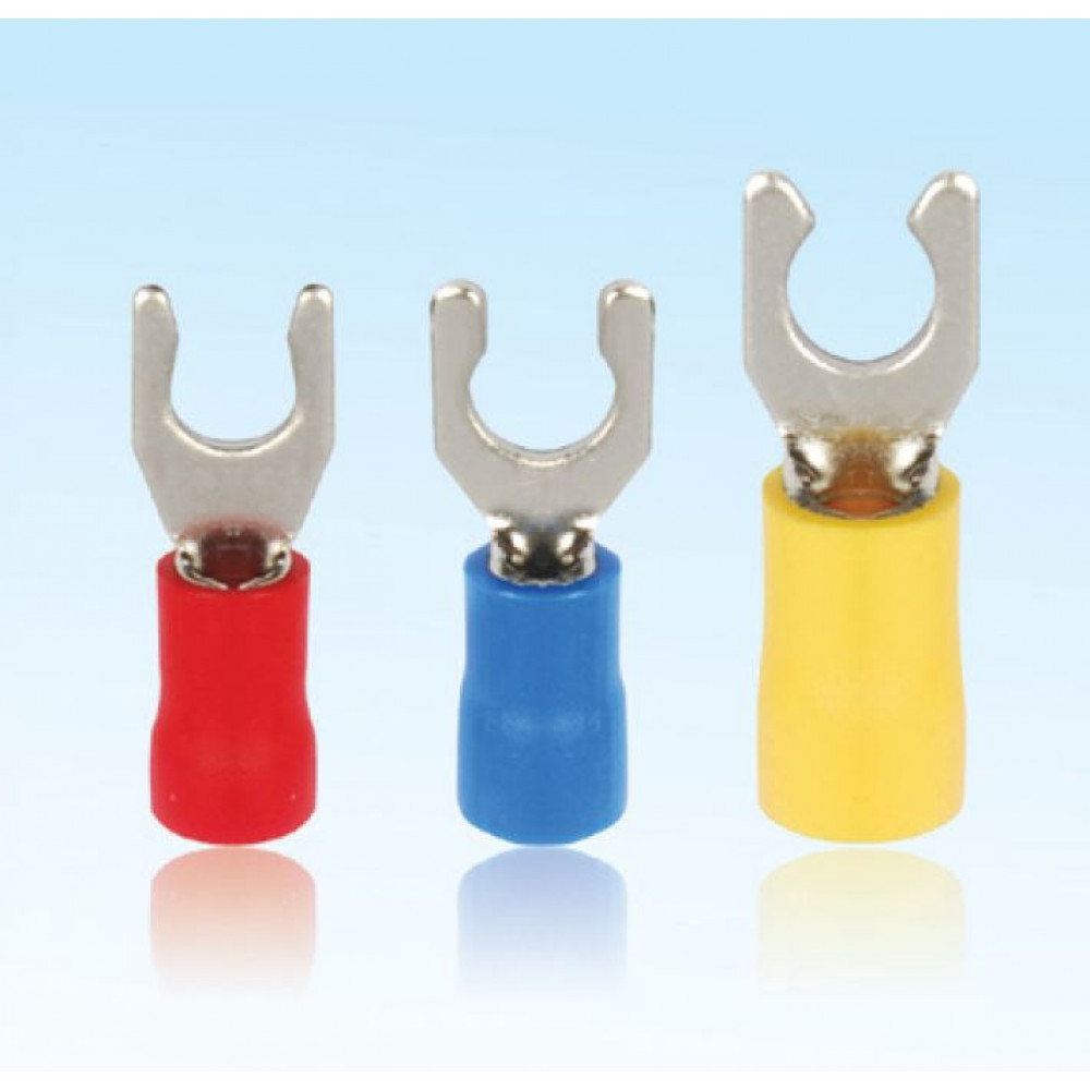 Кабельный наконечник, вилочный, замковый, медь, НВИз 2.5-4 (сечение проводника 1,5 - 2,5 мм кв., ширина вилки 4 мм), изолированный, цвет: синий, в упаковке 100 штук