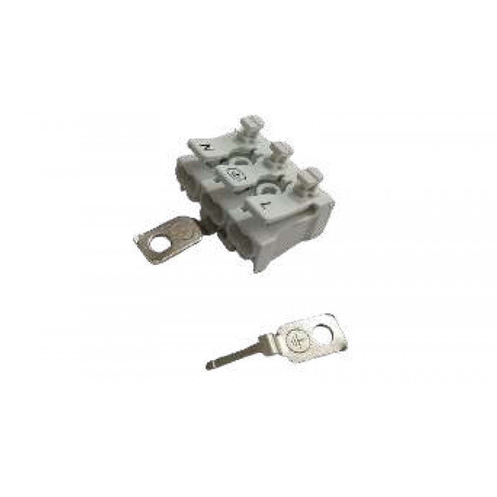 Клемма пружинная соединительная, с кнопкой, КСП 923 3 полюса, с медной пластиной заземления, сечение проводника 0,75 - 2,5 мм кв., 450V, 24A, цвет: белый