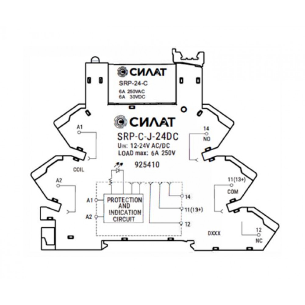Реле с колодкой, 1 группа переключающих контактов, входное напряжение: 12-24 AC/DC, максимальное коммутируемое напряжение: 250VAC, коммутируемый ток: 6A, сечение обслуживаемых проводников: 0,5 - 1,5 мм кв. пружинная фиксация провода