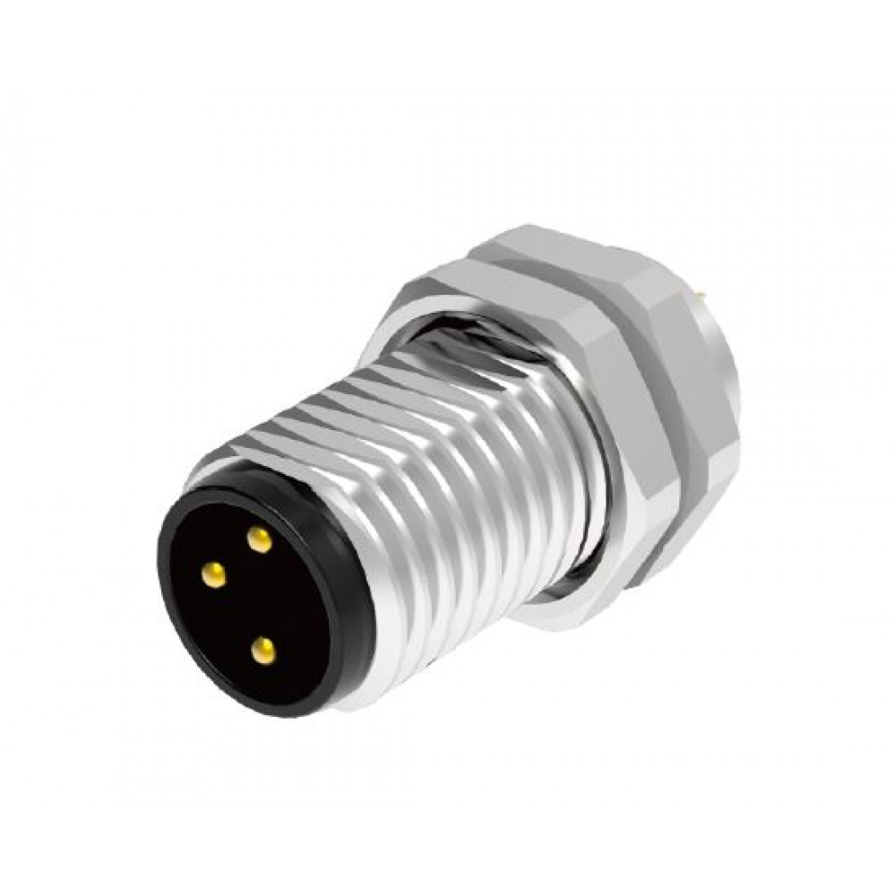 Вилочный разъем в панель, 4 полюса, M8, гайка спереди, вывод под пайку, A-Code, 3А, 60V, резьба на гайке M8*0.5, резьбовое соединение: латунь, неэкранированный