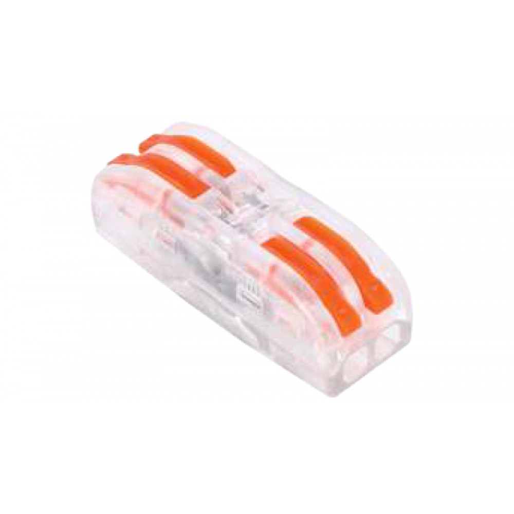Рычажная клемма, проходная, универсальная, 2 полюса, сечение проводника 0,08 - 4,0 мм кв., 250V, 32A,цвет корпуса: прозрачный, цвет рычагов: оранжевый,в упаковке 50 штук (Аналог 222-4122)