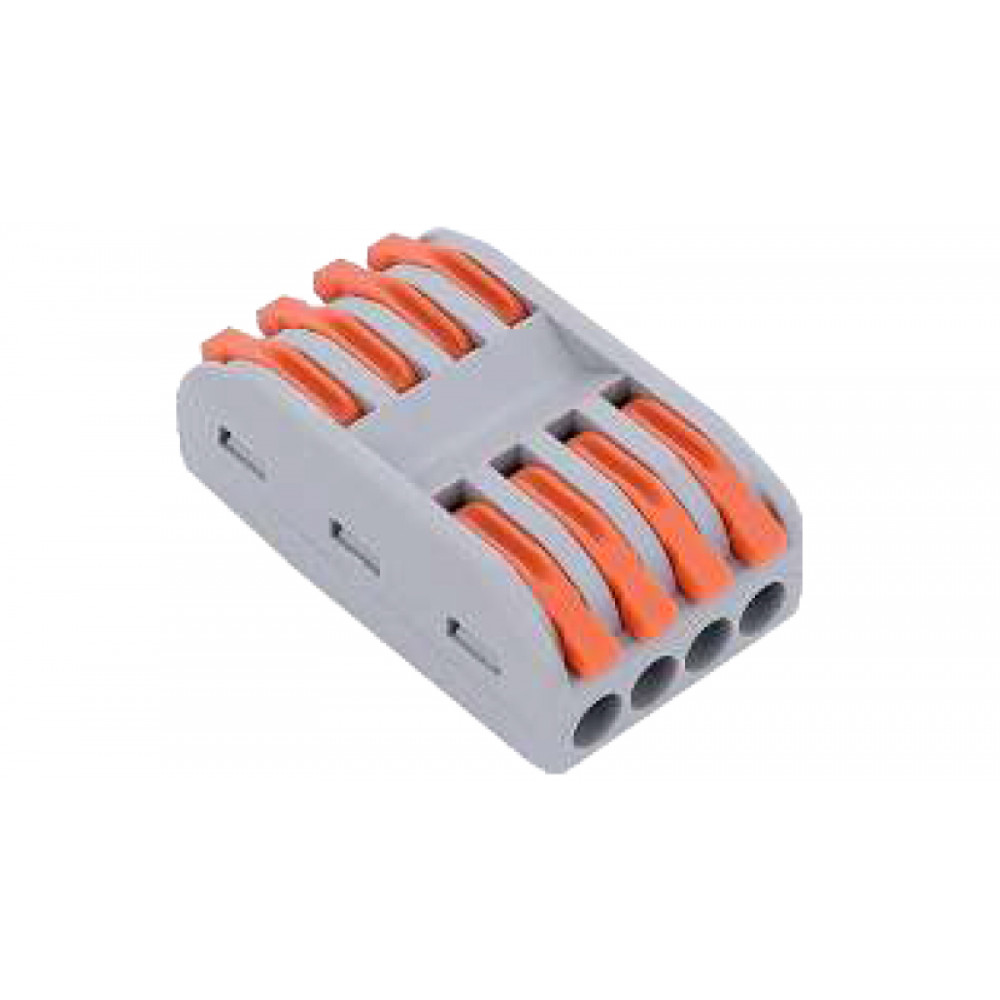 Рычажная клемма, проходная, универсальная, 4 полюса, сечение проводника 0,08 - 4,0 мм кв., 250V, 32A,цвет корпуса: серый цвет рычагов: оранжевый,в упаковке 50 штук (Аналог 222-4144)