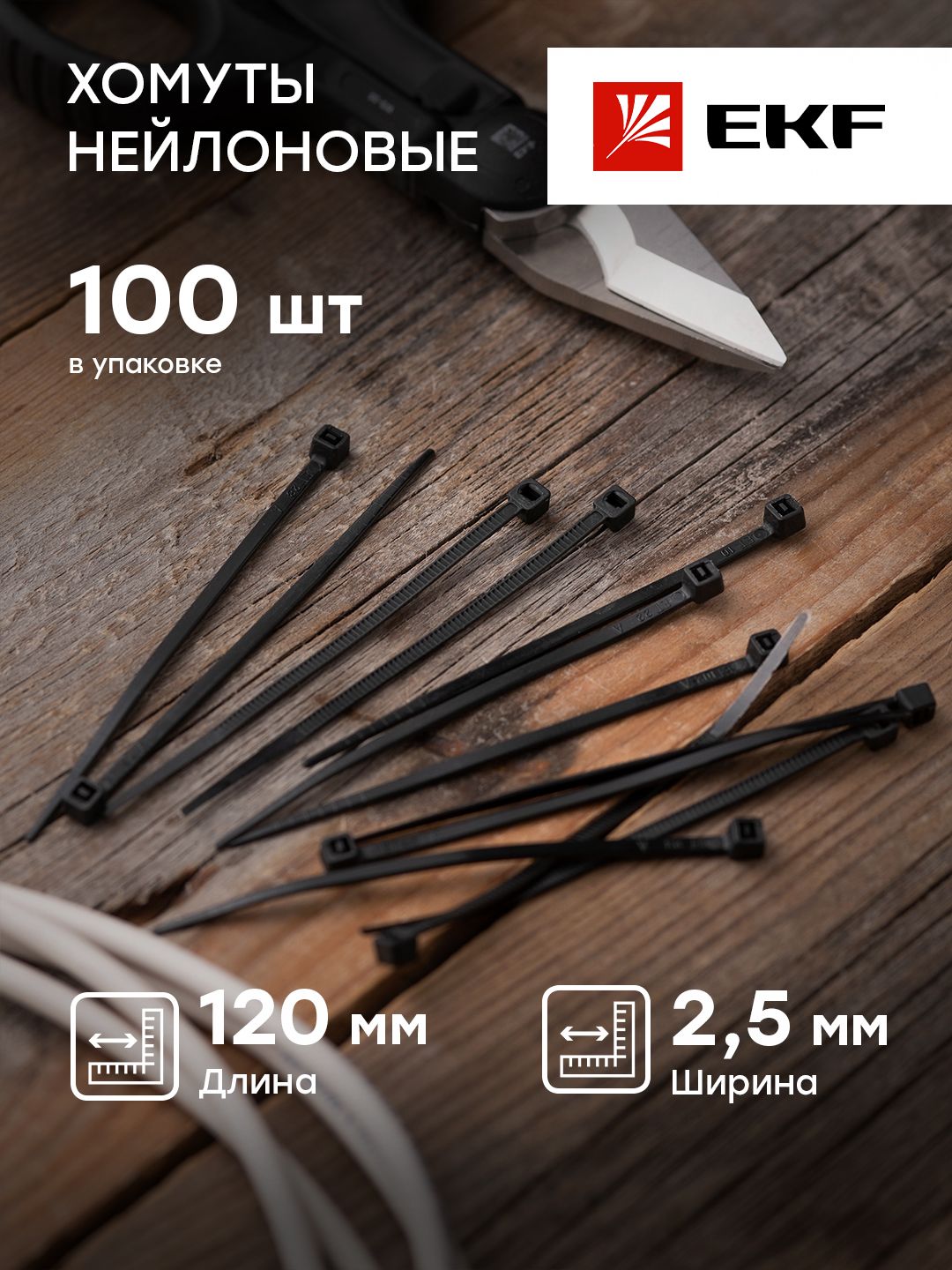 Хомут кабельный 2.5х120 нейл. черн. (уп.100шт) plc-cb-2.5x120 EKF