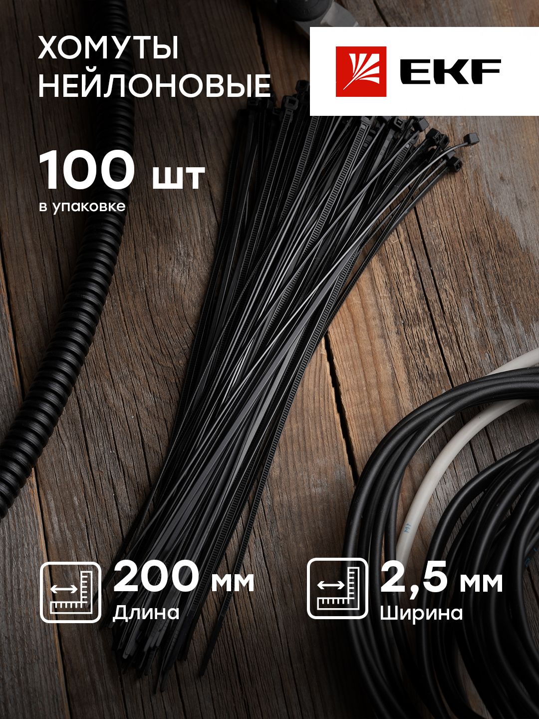 Хомут кабельный 2.5х200 нейл. черн. (уп.100шт) plc-cb-2.5x200 EKF