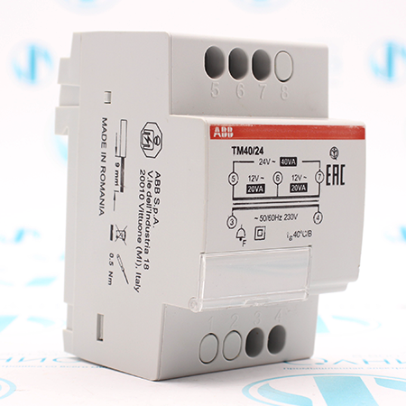 2CSM228785R0802 трансформатор звонковый ABB типа TM 40/24 на 40 ВА и 24 Вольта. Трансформатор TM 40/24 используется для подачи питания в непрерывном режиме на измеряющие, вспомогательные электронные устройства (например, измерительные, телефонные системы с видео входом, связь по шине) и для сетей с очень низким безопасным напряжением (SELV). Номинальное напряжение: 230 Вольт. Вторичное напряжение: 24 Вольта. Номинальная мощность: 40 ВА.