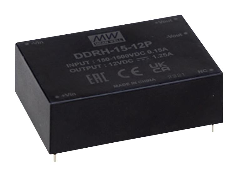 Преобразователь DC/DC, 15Вт, вход 150…1500 В DC, выход 24В/0.625А, КПД=88%, изоляция 4000В DC, максимальная емкостная нагрузка 625мкФ, 76.2х50.8х25мм, -40...+85°С, в плату