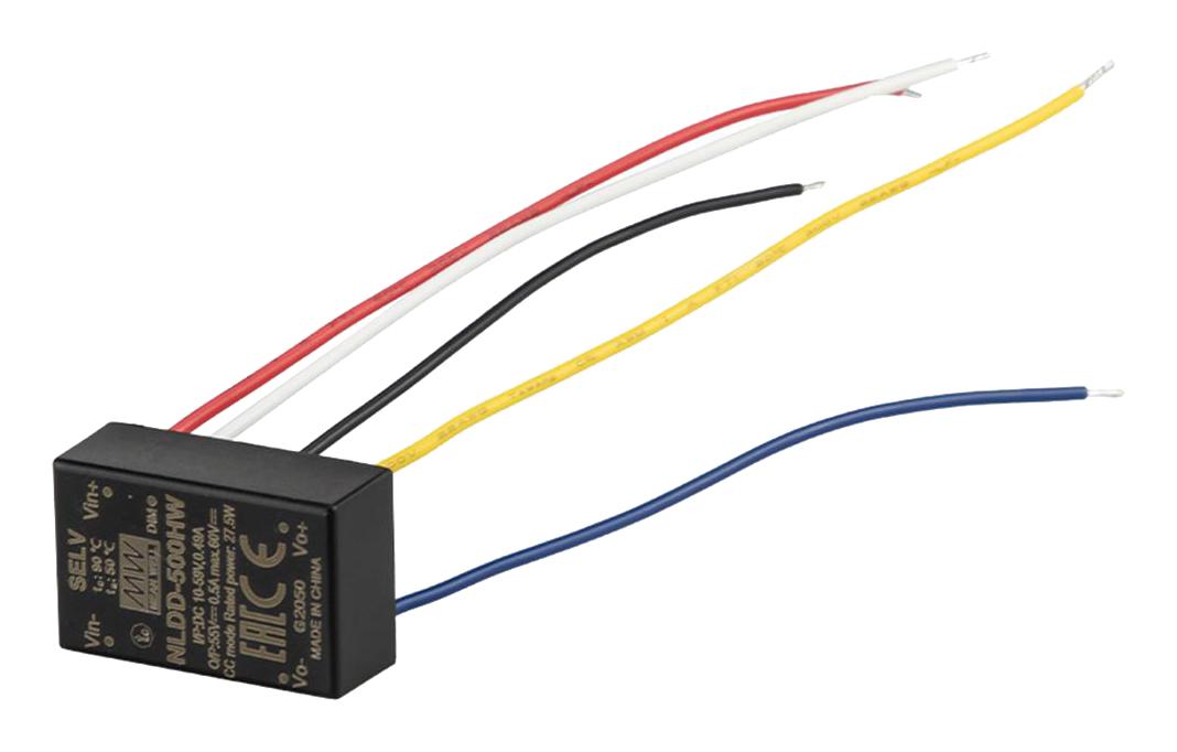 DC/DC LED понижающий, вход 10…56В, выход 6…52В/1.05А, КПД до 96%, вход On/Off/DIMM, 32.1x20.5x12.5мм, проводные выводы, -40…50°C, пластик