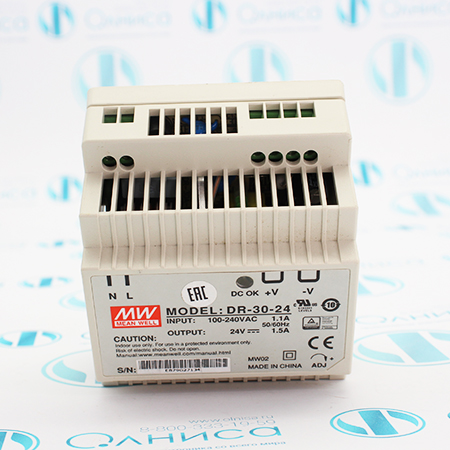 DR-30-24 Блок питания Mean Well, 230 вольт переменного тока (0.75A) в 24 вольта постоянного тока (1,5 А)
