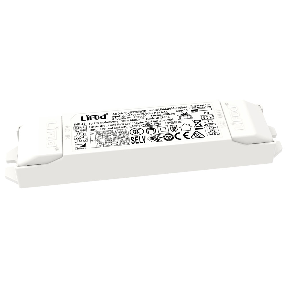 LF-AAD008-0350-42, LED драйвер, 8Вт, вх 220-240В AC, вых 100-350мА 9-42В DC, изол, пласт, DALI/PUSH