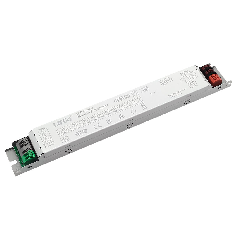 LF-FSD090YA, LED драйвер, 90Вт, вх 220-240В AC, вых 250-1050мА 54-240В DC, неизол, металл, DALI/PUSH