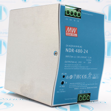 NDR-480-24 Блок питания Mean Well, работоспособен при входном напряжении 90…264 В в диапазоне температуры -20…+70˚С, характеризуются хорошим КПД, обладают защитой от короткого замыкания, перегрузки, перенапряжения и перегрева. Предназначены для промышленных систем управления, систем автоматизации и для питания различных электромеханических устройств.