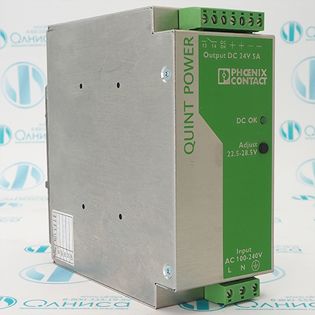 QUINT-PS-100-240AC/24DC/5 2938581 Блок питания Phoenix Contact для монтажной рейки, 24 B DC/5 А, с регулированием в первичной цепи, 1-фазный. В рабочем состоянии, после диагностики.