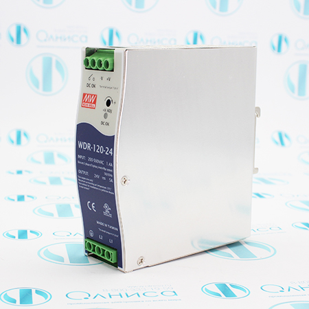 WDR-120-24 Блок питания Mean Well, Входное напряжение 180-550 VAC (1 или 2 фазы) Выходное напряжение 24 VDC Мощность 120 Ватт КПД 91% Изоляция вход -> выход 3000 VAC Температурный диапазон -25 +70°C Защита от короткого замыкания, перегрузки, высокого напряжения и температуры