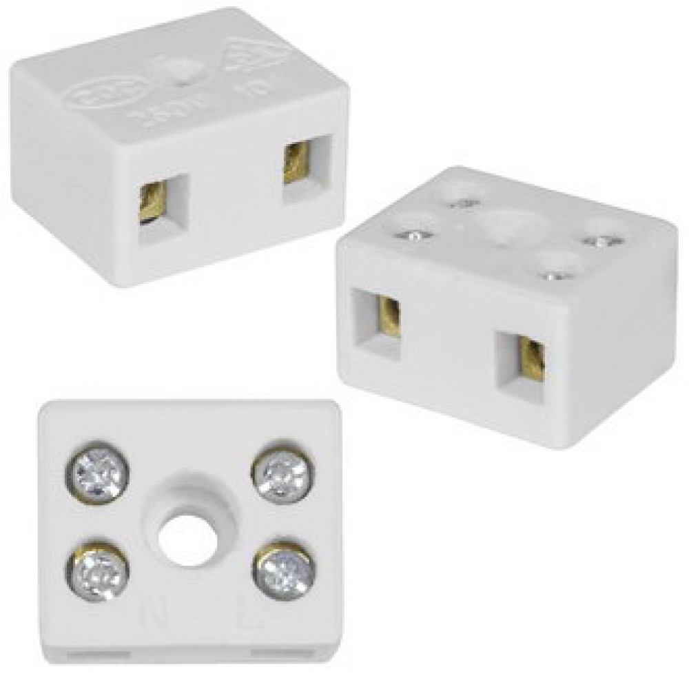 Клемма винтовая керамическая RUICHI КВК-2-10, для проводов сечением 10 мм2, 2x2 контакта, 600 В, 10 А, -40...+450 °C, белая