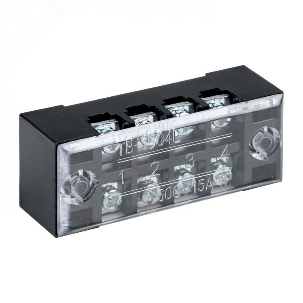 Клеммная колодка винтовая с крышкой RUICHI TB-1504, 8 контактов, М3, 15 А, 600 В, 14 AWG, 2 мм2, корпус пластик модифицированный