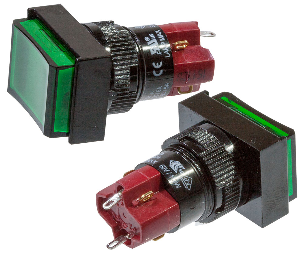D16LAT1-1ABKG, кнопка с фиксацией и LED подсветкой 250В 5А