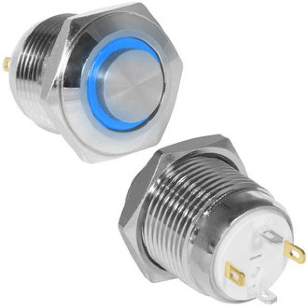 Кнопка антивандальная RUICHI GQ16H-10E/J/B/N, OFF-(ON), рабочая температура -25…+55 °C, никелированная латунь
