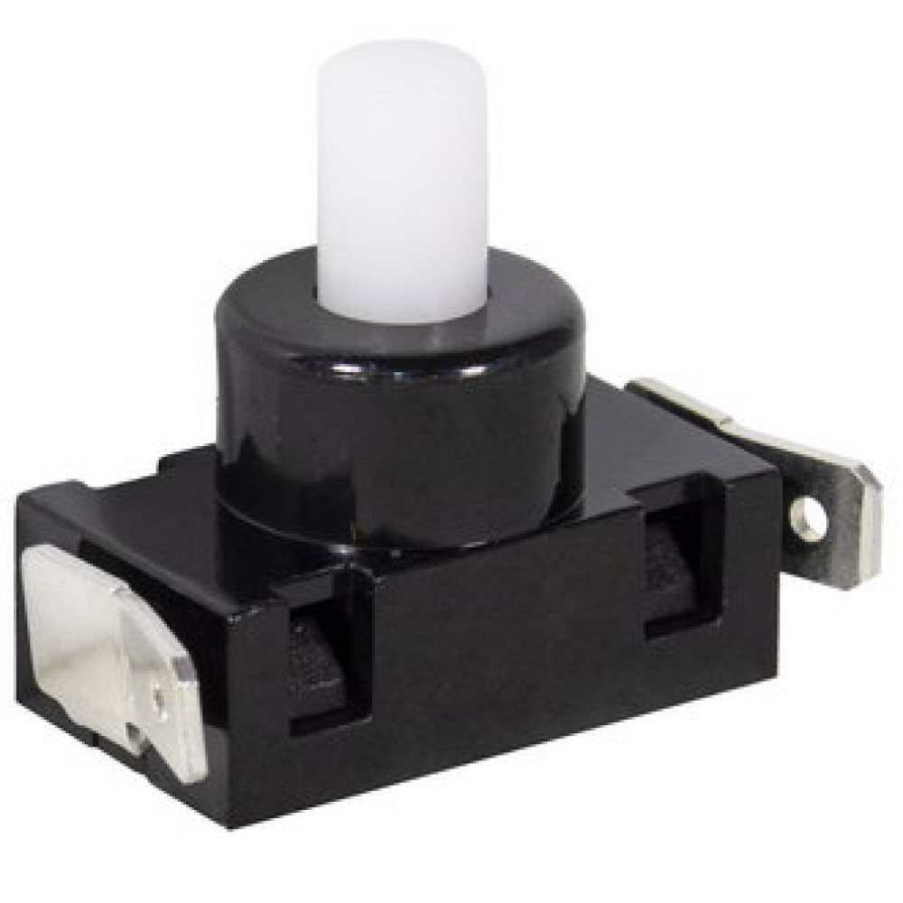 Кнопочный переключатель RUICHI PBS101A, 2 контакта вертикально вверх, корпус черный, кнопка белая