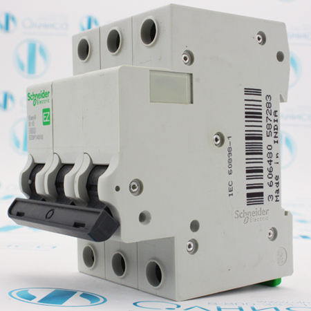 EZ9F14310 Выключатель автоматический Schneider Electric, Автоматический выключатель серии Easy9 Schneider Electric, 3-полюсный, номинальный ток 10 А, характеристика В, Icn = 4.5 кА. - Применяется в трехфазных сетях напряжением до 400 В.- Предназначен для защиты от перегрузок и КЗ.- Характеристика типа В (3-5 In) обеспечивает защиту линий с малыми токами КЗ, например, линий большой длины и электронного оборудования.- Оснащен механизмом «мгновенного включения».- Ударопрочный корпус из специального пластика с 6 металлическими заклепками.
