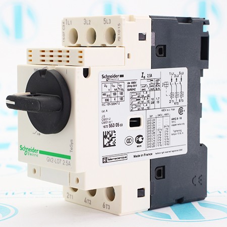 GV2L07 Выключатель автоматический Schneider Electric, Номинальное напряжение: 690 Вольт, Номинальный рабочий ток: 2.5 Aмпер, Условный тепловой ток на открытом, воздухе: 2.5 Ампер, Отключающая способность: 100 кАмпер Мощность, рассеиваемая одним полюсом: 1,8 Ватт, Напряжение изоляции: 690 Вольт , Номинальная рабочая мощность: 1.5 кВатт, Количество полюсов: 3, Размеры: 97 х 45 х 89 мм, Степень защиты: IP20.