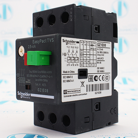 GZ1E08 Выключатель автоматический Schneider Electric, Трехполюсный автоматический выключатель GZ1E08 предназначен для управления и защиты электродвигателей мощностью 1.5кВт (при 400V AC-3) от перегрузки и короткого замыкания. Диапазон уставок теплового расцепителя 2.5...4 А. Защита электродвигателей обеспечивается теплоэлектромагнитным расцепителем, встроенным в автоматический выключатель.