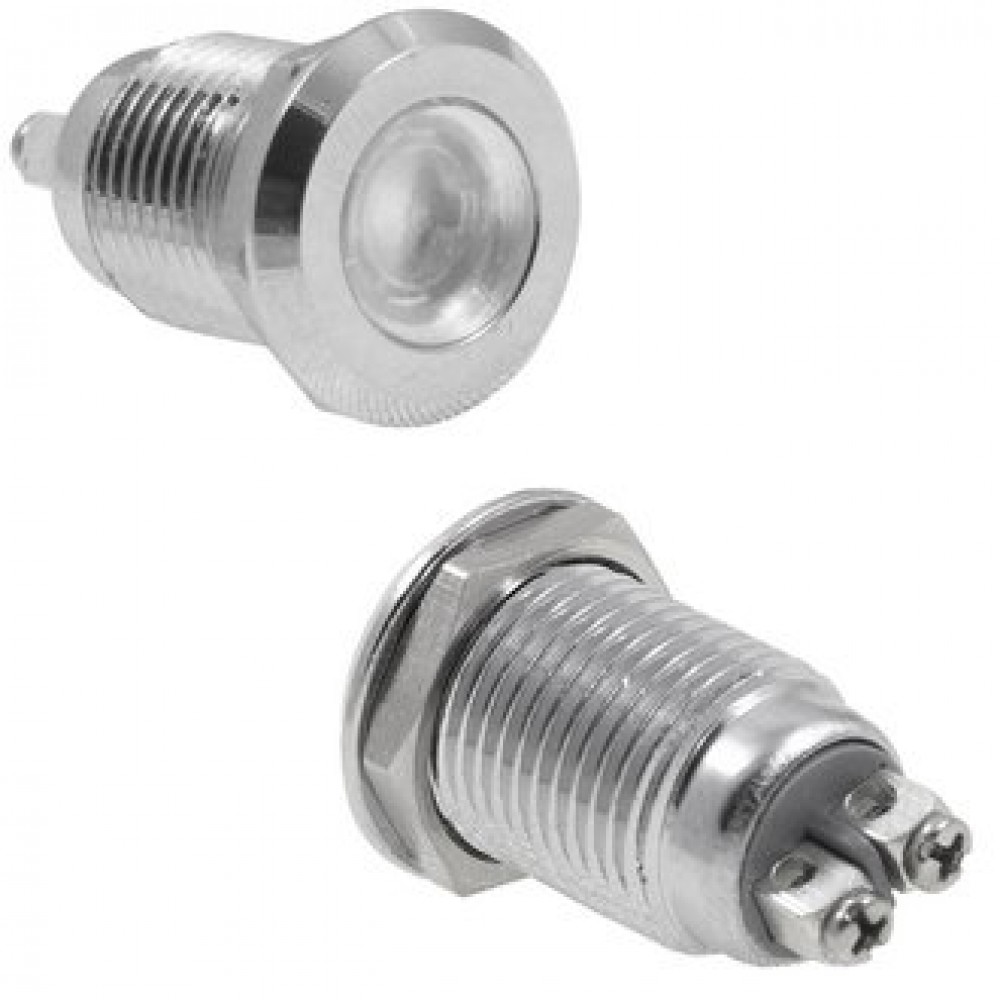 Антивандальная индикаторная лампа, цвет белый, 12-24В, 2А, посадочный диаметр М12, винтовое соединение