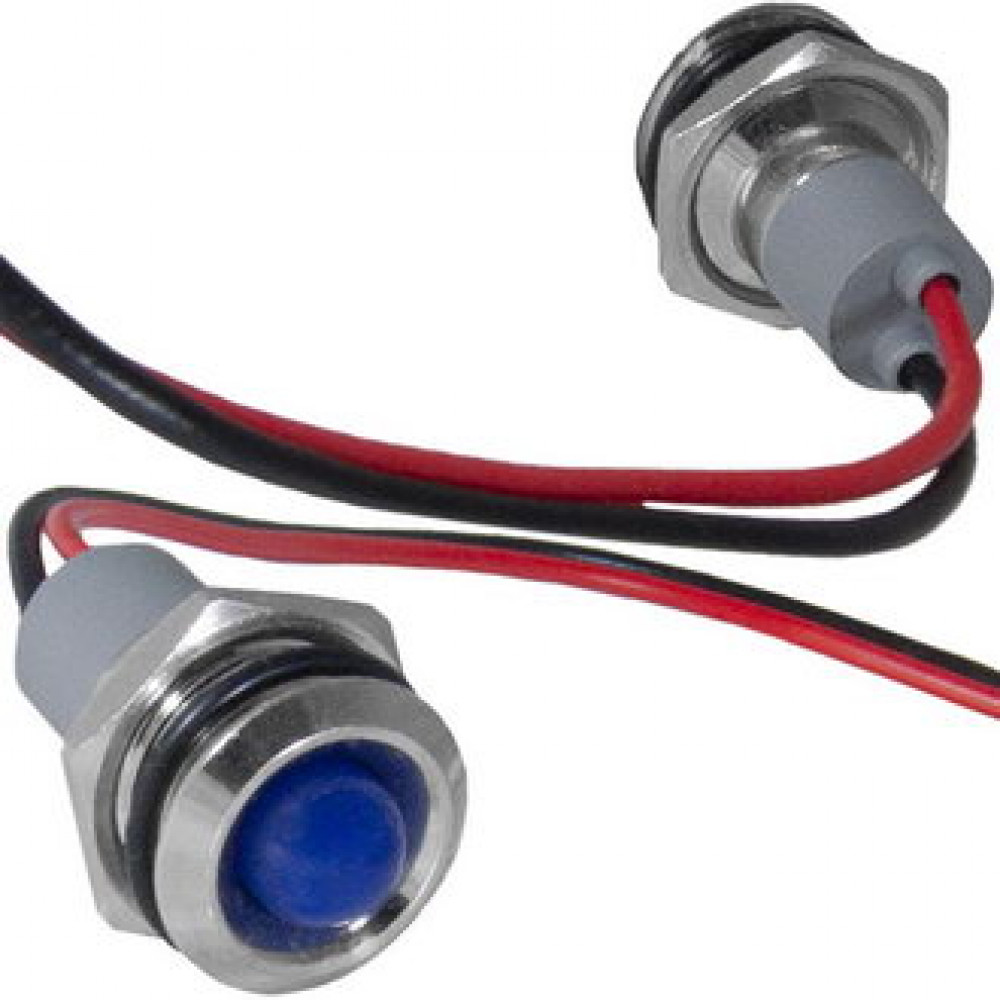 Индикатор антивандальный RUICHI GQ12WR-B, цвет синий, точечный излучатель, 12-24 В, 15 мА, гибкие выводы, никелированная латунь