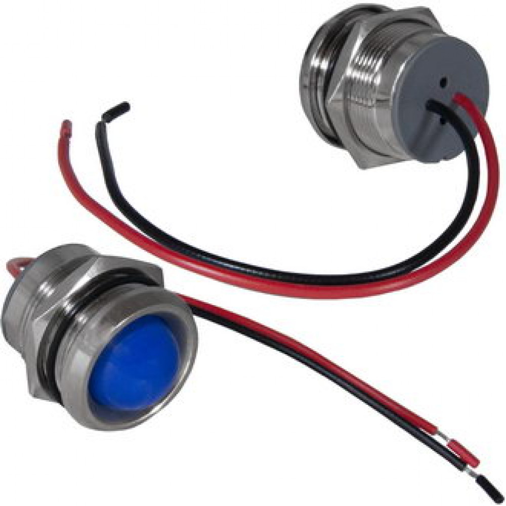 Индикатор антивандальный RUICHI GQ22WR-B, цвет синий, точечный излучатель, 12-24 В, 15 мА, гибкие выводы, никелированная латунь