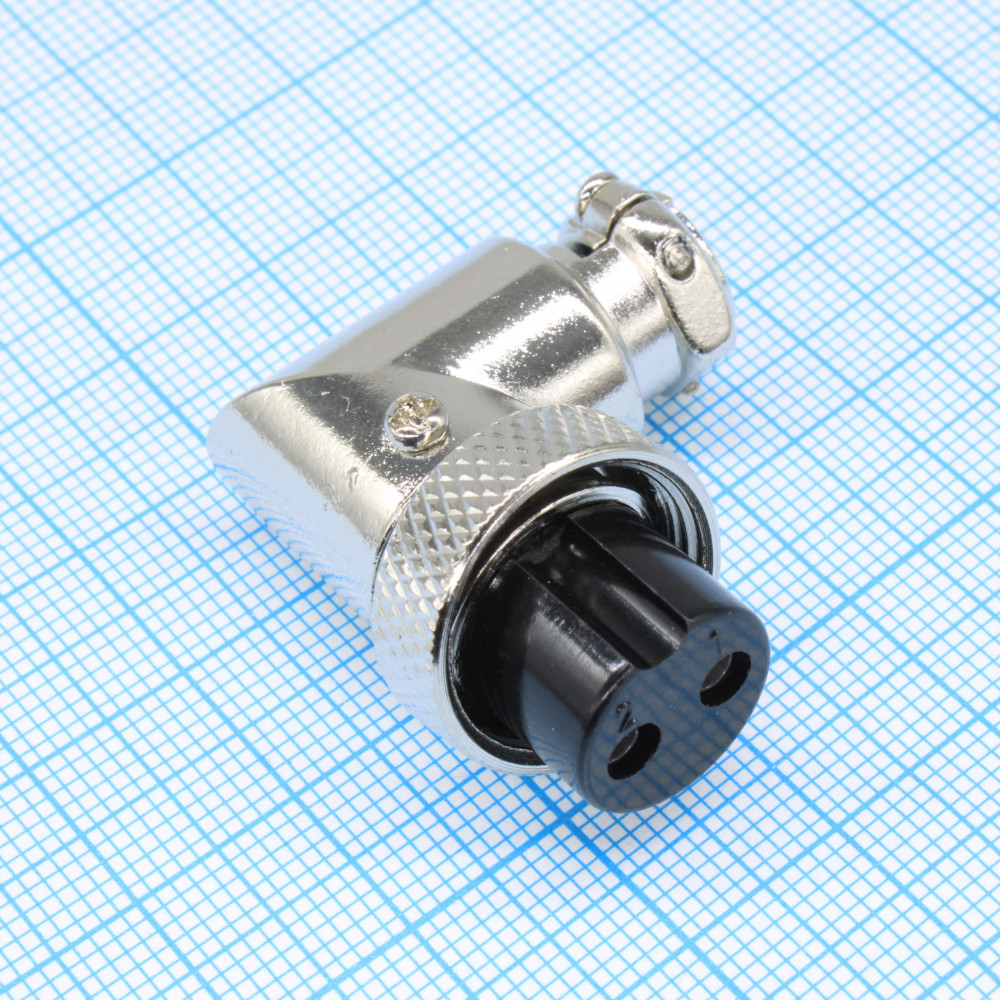 Разъем цилиндрический (розетка) угловой на кабель 2 контакта