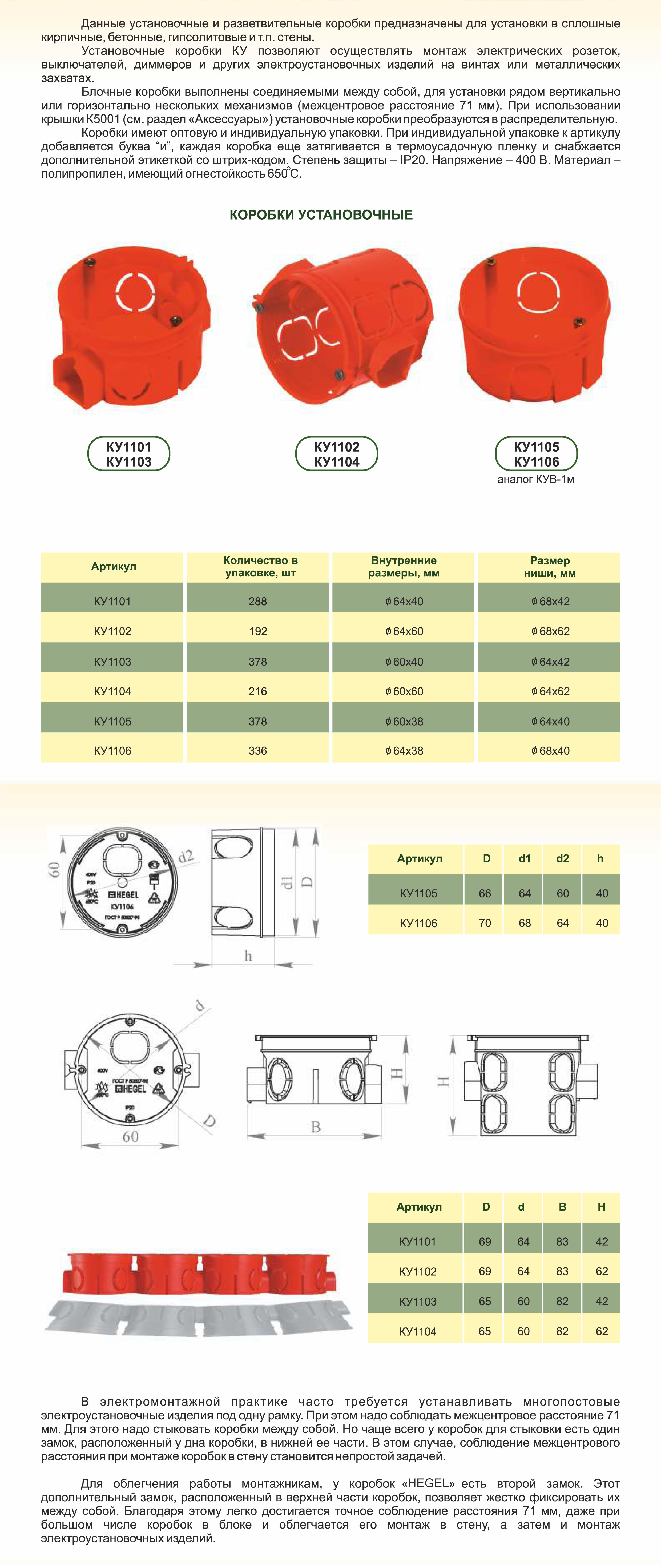 Заказать Коробка установочная СП 68х42 блочная КУ1101 HEGEL Необходимое количество:* Ваше имя: Телефон:* E-mail: