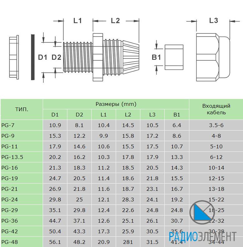 Тип Кабельный ввод герметичный пластиковый серии PG