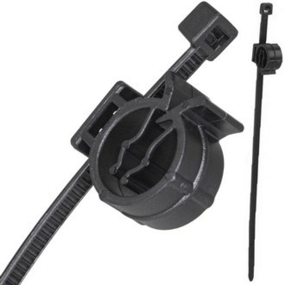 Кабельная стяжка с трубчатым продольным креплением RUICHI, диаметр крепления 10 мм, 155х3.6 мм, охват 30 мм, PA66, цвет черный