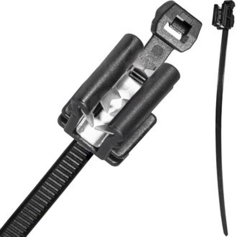 Кабельная стяжка с металлическим фиксатором RUICHI, до 3.0 мм, размещение жгута продольное вверх, 199.2х4.6 мм, охват 45 мм, PA66, цвет черный
